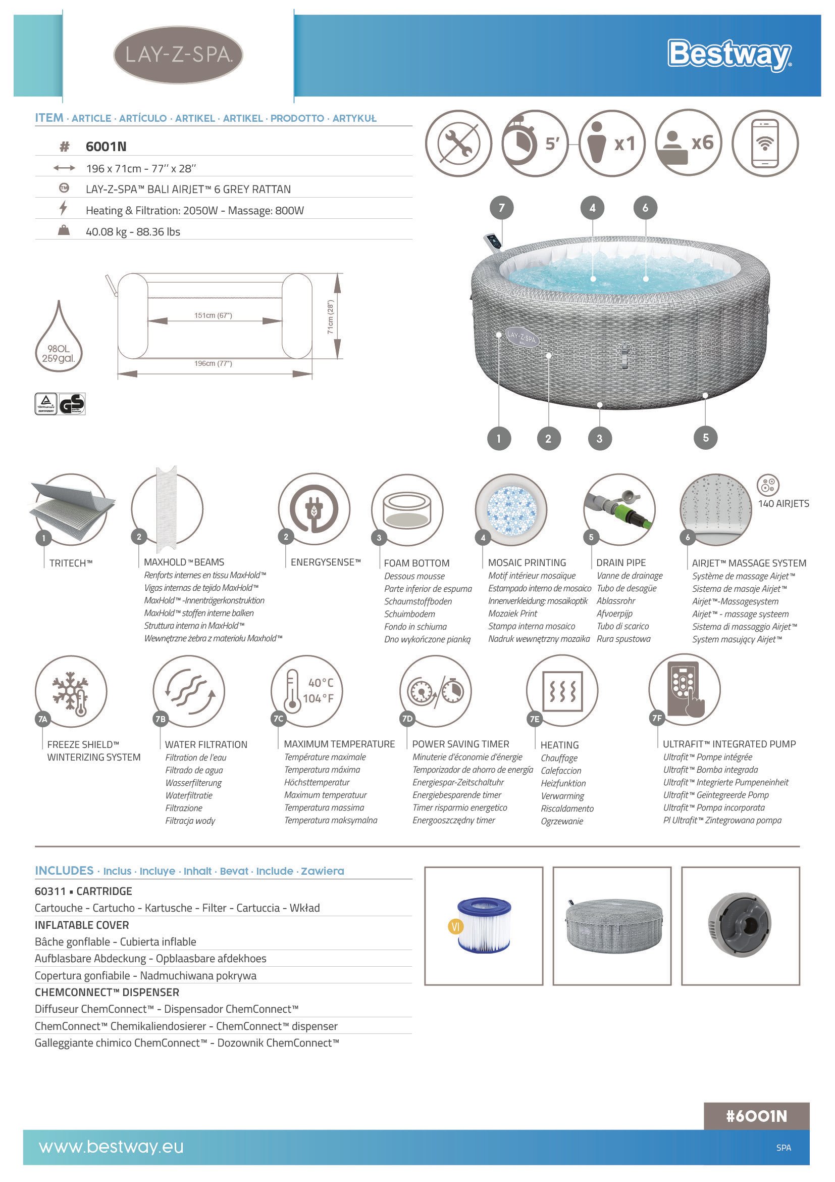 Lay-Z-Spa® Bali Smart AirJet™ 6001N Enerji Tasarruflu Şişme Spa Havuzu, Mobil Uygulama Kontrollü, 4-6 kişilik 196 X 71 cm