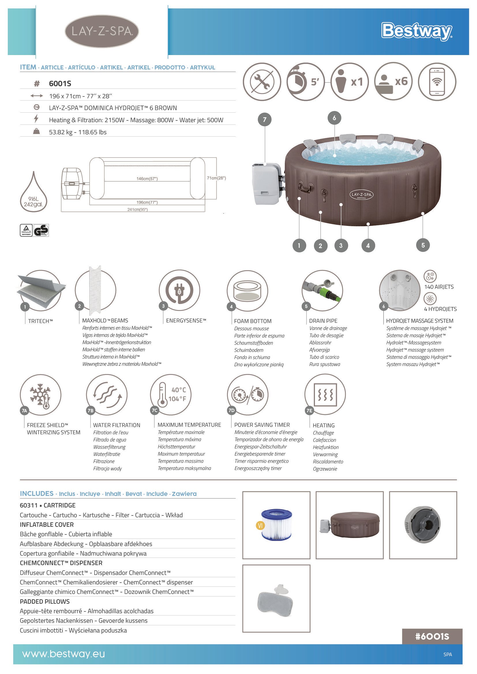 Lay-Z-Spa® Dominica Smart HydroJet™ 6001S Enerji Tasarruflu Şişme Spa Havuzu, Mobil Uygulama Kontrollü, 4-6 kişilik 196 X 71 cm